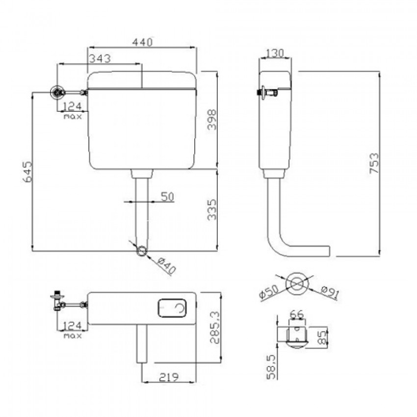 Καζανάκι επίτοιχο ABS,κομπλέ με: