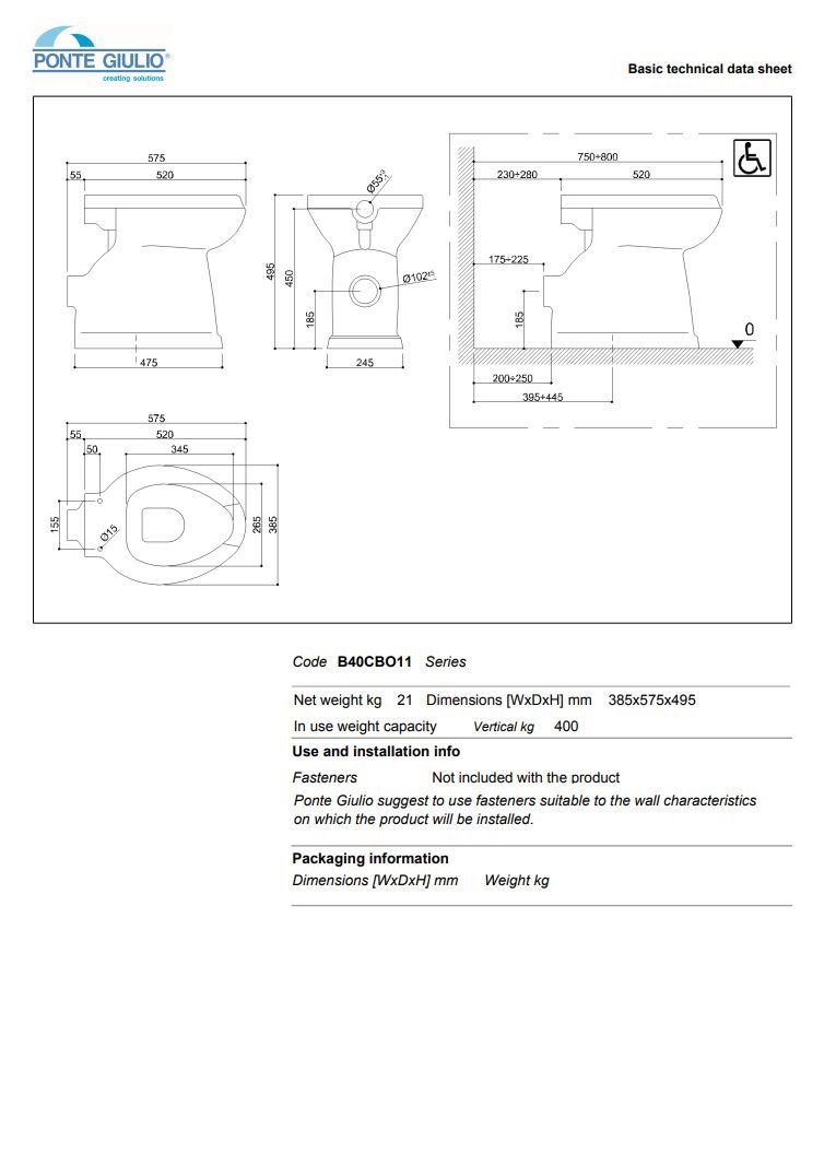 • (Στη φωτογραφία απεικονίζεται η λεκάνη με κάθετη αποχέτευση κωδ:B40-CBO-1042)