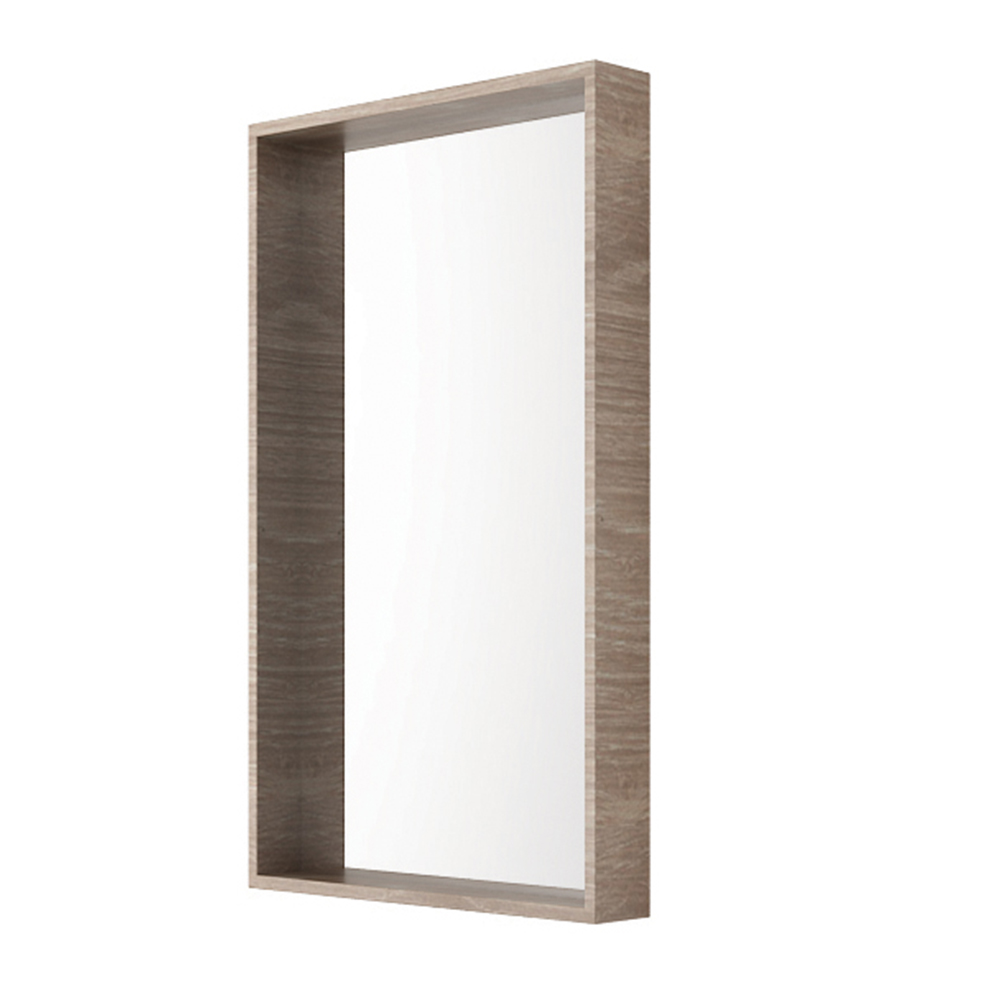 Καθρέπτης μπάνιου Infinity 80/100 ο οποίος μπορεί να τοποθετηθεί σε οριζόντια ή κατακόρυφη διάταξη. Διατίθεται σε έξι διαφορετικές αποχρώσεις ξύλου και σε λευκό χρώμα Laminate.
