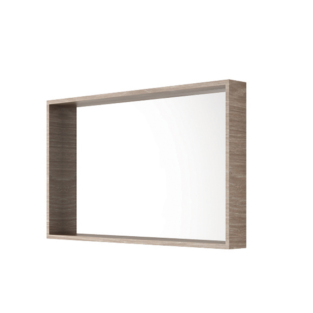 Καθρέπτης μπάνιου Infinity 80/100 ο οποίος μπορεί να τοποθετηθεί σε οριζόντια ή κατακόρυφη διάταξη. Διατίθεται σε έξι διαφορετικές αποχρώσεις ξύλου και σε λευκό χρώμα Laminate.