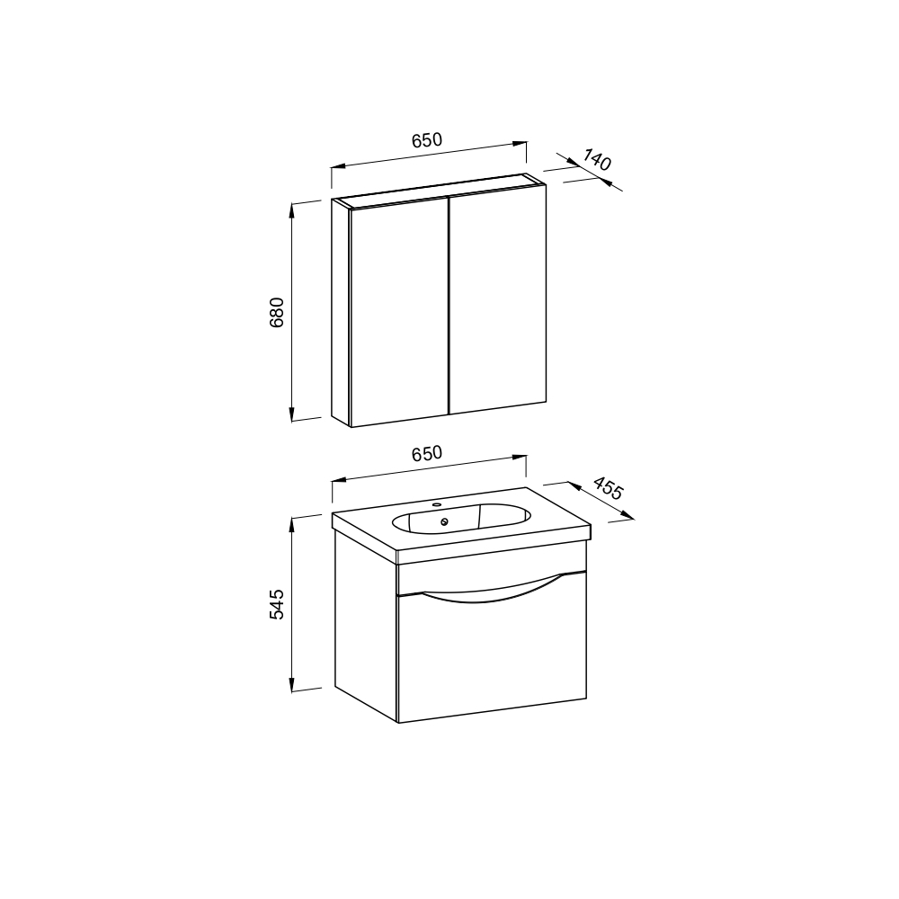 Σετ Έπιπλο Μπάνιου SMILE Λευκό / Barok MDF 18mm Λάκα 65 9SSMI065WBM