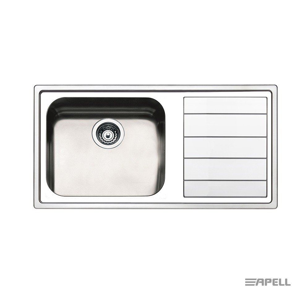 Νεροχύτης LINEAR ανοξείδωτος με 1 μεγαλη γούρνα και πάγκο εργασίας στα δεξιά, διάσταση 100x50 εκ., για ερμάριο 80εκ., APELL Ιταλίας