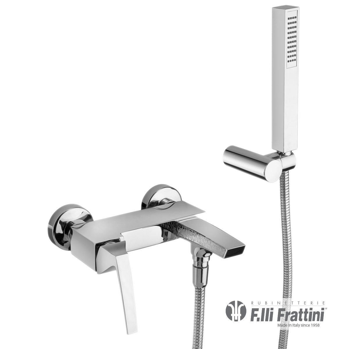 Μπαταρία λουτρού LUCE με χειροποίητο ντεκόρ & τηλέφωνο, επίτοιχο στήριγμα τηλεφώνου και άθραυστο σπιράλ 1,5m., FRATTINI Ιταλίας