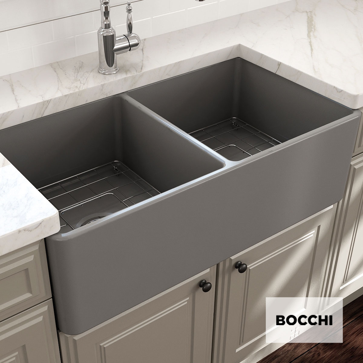 Νεροχύτης Κουζίνας Πορσελάνης Επικαθήμενος 84x46 Bocchi Grey Matt