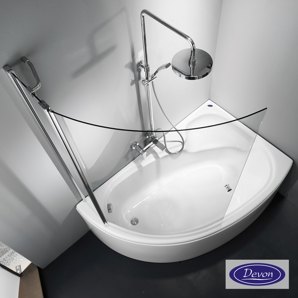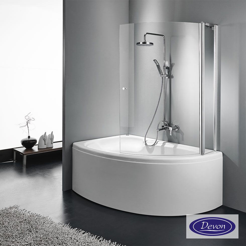 Διαχωριστικό κυρτό δίπτυχο μπανιέρας 120εκ., Devon Primus-Plus Clear