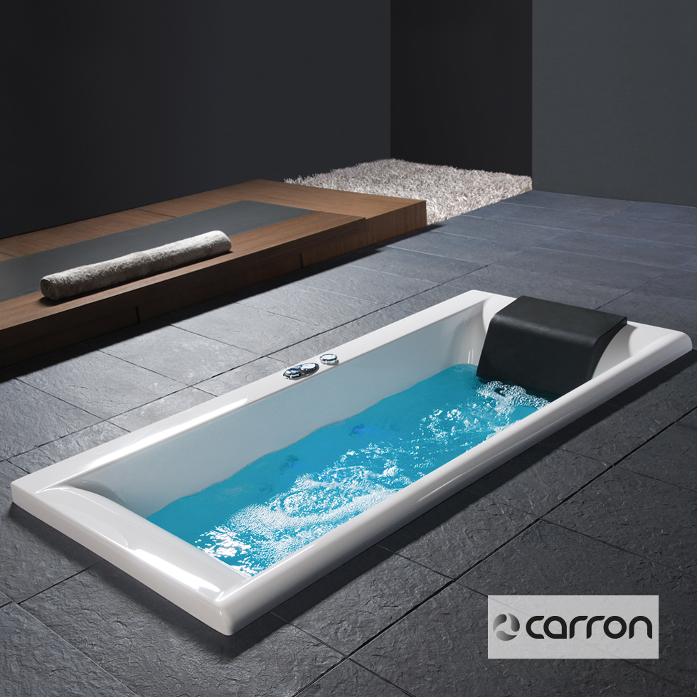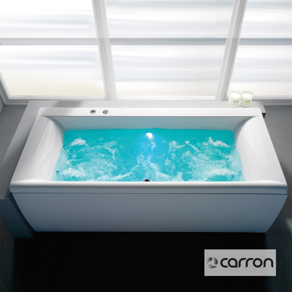 Μπανιέρα HAIKU 180x90 ακρυλική βαρέως τύπου CARRONITE χωρητικότητας 290L, με σύστημα υδρομασάζ με: ηλεκτρονικό on/off, 8 jet chrome, μοτέρ 1,75 hp, υποβρύχιο φωτισμό Led, αισθητήρα στάθμης νερού & πλαίσιο στήριξης, CARRON Αγγλίας