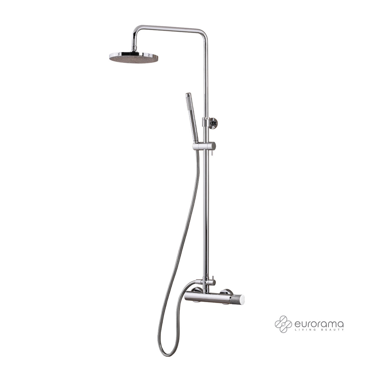 Μπαταρία ντουζιέρας θερμομικτική OSO 2 εξόδων με κολώνα Φ20/25 mm ρυθμιζόμενου ύψους 83-144 cm, ανακλινόμενη κεφαλή Φ20 cm &τηλέφωνο με σπιράλ PVC 1.5m, EURORAMA Ιταλίας