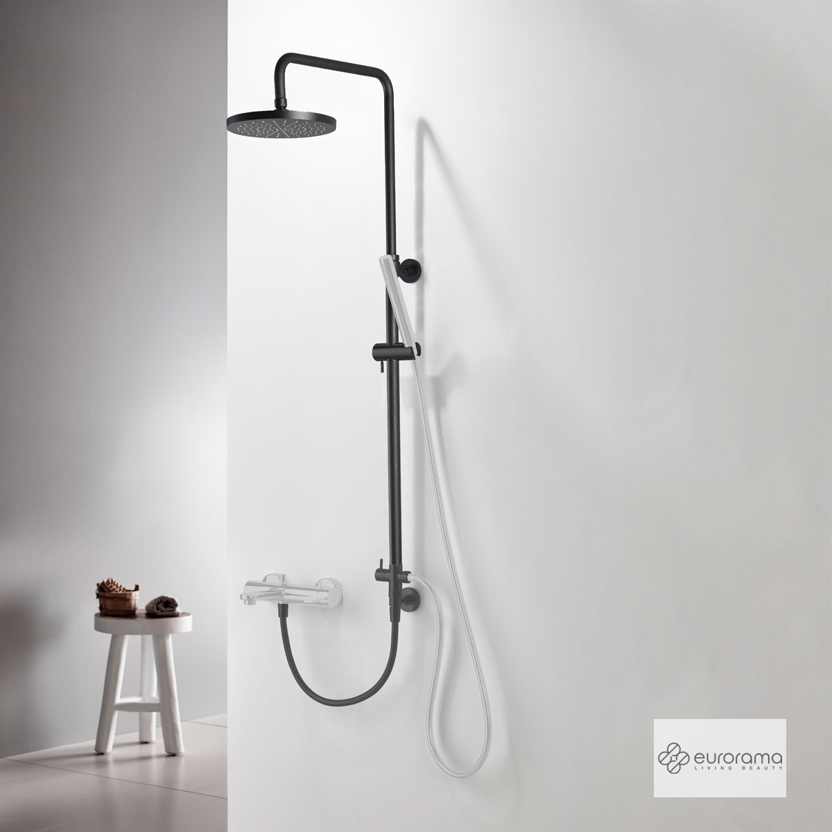 Ρυθμιζόμενη Κολώνα Ντους με κεφαλή Φ20 για σύνδεση μεΜπαταρία Λουτρού, Black Matt