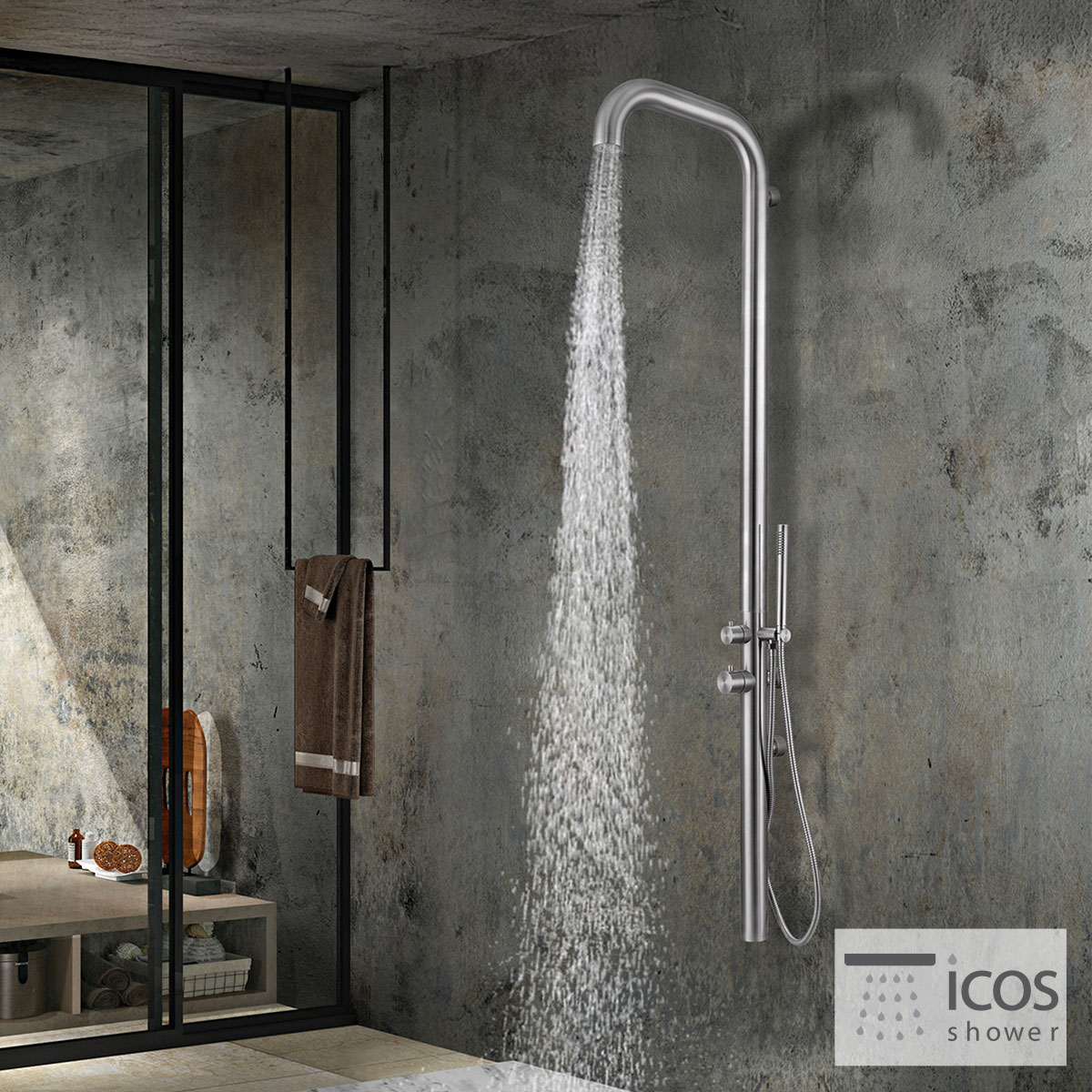 Στήλη ντους - υδρομασάζ θερμομικτική ETNA ΜΙΧ ICOS SHOWER ύψους 179 εκ. από ανοξείδωτο χάλυβα Inox AISI316. Με εξόδους σε ντους κεφαλής και τηλέφωνο
